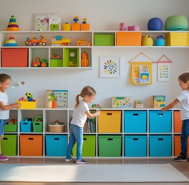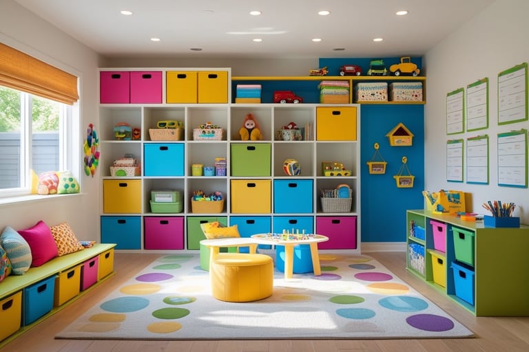 Färgkodade etiketter eller bilder på förvaringslådorna hjälper yngre barn att förstå systemet. De lär sig snabbt var olika saker hör hemma och kan bidra till att hålla ordning.
