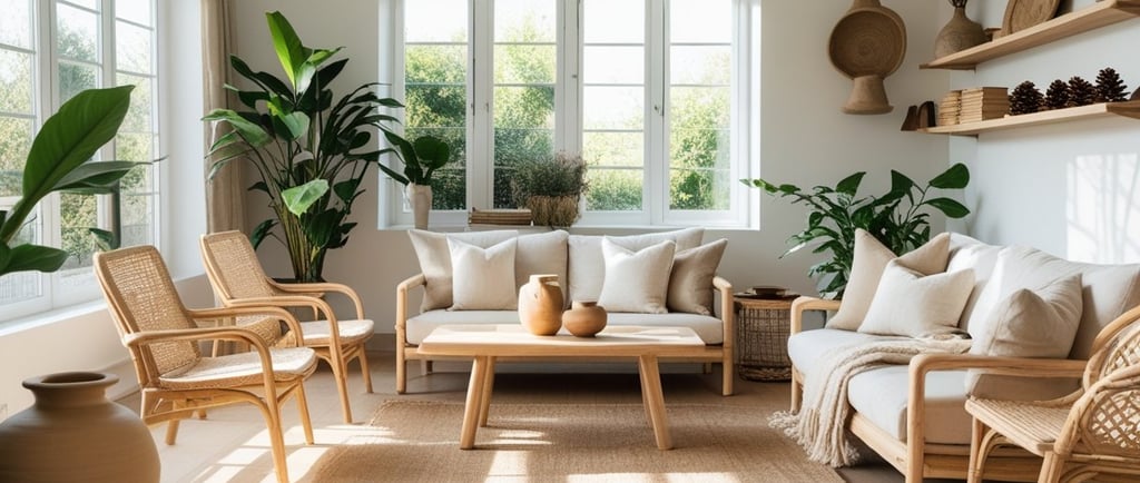 Grundläggande möbler i naturmaterial: